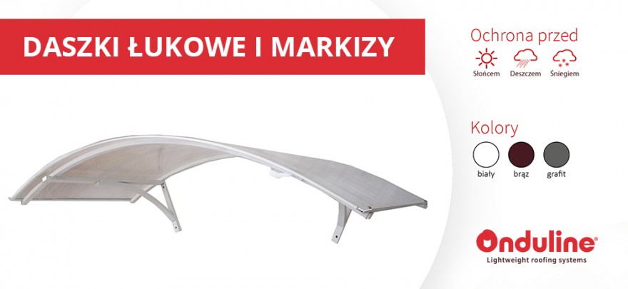 Daszki balkonowe z poliwęglanu ONDULINE dostępne są w trzech uniwersalnych wariantach kolorystycznych, co pozwala na zastosowanie ich w każdej aranżacji. Warianty kolorystyczne dostępne są od ręki, dlatego nie ma konieczności oczekiwania na zamówiony produkt. Wszystkie daszki tarasowe malowane są proszkowo, co nie tylko podkreśla ich wygląd, ale także zapewnia zabezpieczenie przed korozją. Taka technika wykończenia nie wymaga pielęgnacji, co jest wygodne z punktu widzenia użytkownika.