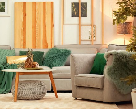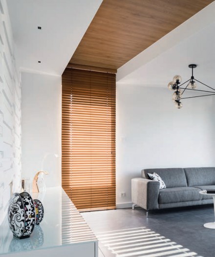 Drewno powraca do naszych wnętrz w zaskakujących formach. Jako ścienne okładziny spotykamy materiały posadzkowe: elegancki parkiet ułożony w jodełkę czy układaną poziomo deskę pokładową. Nikogo nie dziwi również zamontowany na ścianie fragment blatu kuchennego czy wycięta z niego regularna forma geometryczna. W modzie jest również „przedłużanie” ściany na inne płaszczyzny – boazeryjne wstęgi płynnie przechodzą ze ściany na sufit. Hitem są drewniane dekoracje 3D – przestrzenne panele i płyty z lamelowymi deszczułkami. Ozdobną okładziną może być również żaluzjowy parawan.