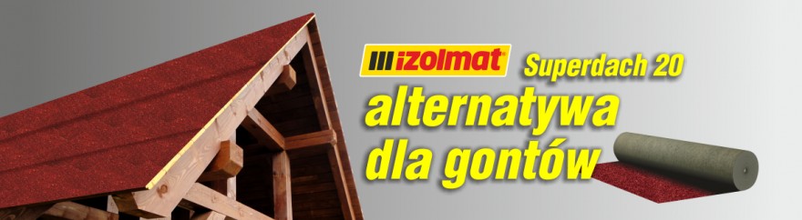 Papa wierzchniego krycia IZOLMAT Superdach 20 przeznaczona jest na dachy skośne o drewnianym podłożu. Zapewnia szczelne pokrycie już w jednej warstwie, przez co jest łatwa i szybka w montażu.