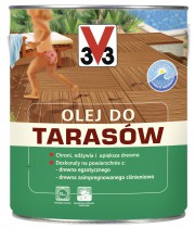 Olej do tarasów V33 jest idealnym produktem do ochrony tarasów, a także elewacji drewnianych wykonanych zarówno z drewna gatunków krajowych, jak i egzotycznych. Cechuje go odporność na działanie wody (w tym chlorowanej) i promieni słonecznych. Produkt zabezpiecza także przed plamami, przywraca naturalną barwę drewna i pozwala mu oddychać.