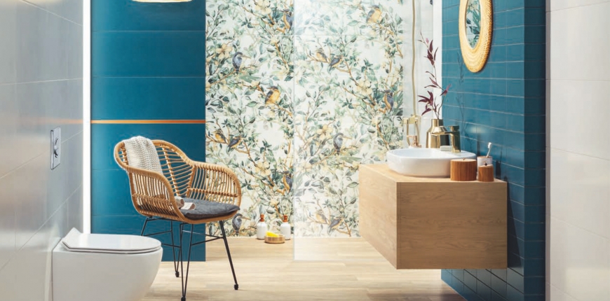 Potrzebę indywidualizacji aranżacji nowoczesnych łazienek doskonale rozumieją producenci płytek ceramicznych – coraz więcej jest kolekcji składających się z mocno zróżnicowanych wzorniczo produktów. Najnowsze propozycje składają się z elementów zarówno zupełnie gładkich, jak i fakturowanych, zestawów różnych formatów oraz kolorów. W komplecie mogą się znaleźć takie o wzorach graficznych oraz inspirowanych otaczającym nas światem, takich jak piasek nadmorskiej plaży czy zmarszczone fale morza. Połączenie płytek gładkich i wzorzystych to już za mało – coraz częściej kolekcja oferuje nam kilka deseni. Zróżnicowane może być również wzornictwo odnoszące się do materiałów, przy czym kontrasty są tu bardzo częstym zabiegiem stylistycznym – w jednym pakiecie znajdziemy płytki imitujące sękate deski oraz gładki kamień. Nierzadko są też odwołania do starych tradycji produkcji ceramicznych okładzin i ich pochodnych: w nawet najbardziej nowoczesnych zestawach znajdziemy zarówno płytki naśladujące wiekowe wzory mozaiki, jak i cementowe czy wytwarzane ręcznie barwne azulejos, a ostatnio także terazzo przypominające nasze poczciwe lastryko. Również stylizowane na grube kafle majolikowe, ale znacznie od nich cieńsze i najczęściej jednolite kolorystycznie okładziny od lat nie wychodzą z mody. Bez problemu znajdziemy też płytki z uproszczonymi geometrycznymi dekorami lub przeciwnie, niemal fotograficznymi wizerunkami pejzaży, detali architektonicznych czy fragmentów miast. W zestawieniach obowiązuje dowolność, byle cała kompozycja była spójna.