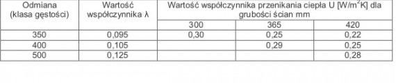 Tabela 4. Współczynnik przewodzenia ciepła λ betonu komórkowego H+H